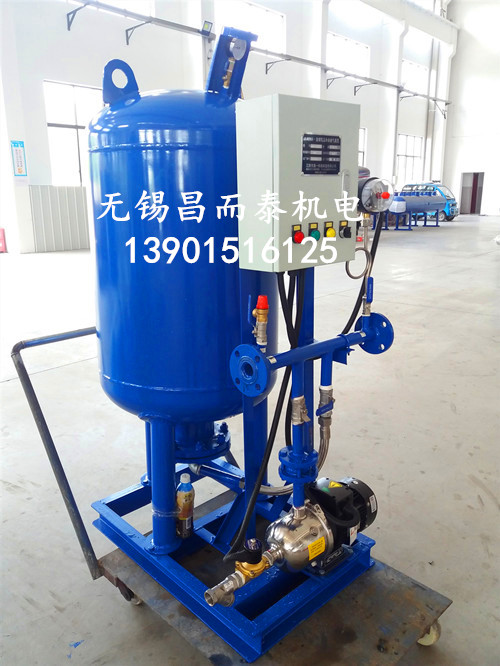 產(chǎn)品概述:DY系列定壓補(bǔ)水裝置由囊式壓力罐、水泵、控制箱、底架、壓力感應(yīng)裝置、管道閥門(mén)等組合而成,是一種兼有升壓、調(diào)節(jié)、儲(chǔ)水、供水等多種功能的常用供水設(shè)備。用途:●用于生產(chǎn)、消防、生活系統(tǒng)加壓供水,一般稱(chēng)之為囊式自動(dòng)給水裝置。●用于采暖、空調(diào)系統(tǒng)中作為穩(wěn)壓膨脹補(bǔ)水設(shè)備使用,一般稱(chēng)為囊式落地式膨脹水箱。工作原理:定壓補(bǔ)水裝置設(shè)備采用系統(tǒng)靜壓作為膨脹水箱內(nèi)的設(shè)計(jì)初始?jí)毫λ^,采用保證系統(tǒng)內(nèi)熱水不汽化的壓力作為膨脹水箱內(nèi)動(dòng)行終端壓力水頭。初始運(yùn)行時(shí)首先啟動(dòng)補(bǔ)水泵向系統(tǒng)及氣壓罐內(nèi)的水室中充水,系統(tǒng)充滿后多余的水被擠進(jìn)膠囊內(nèi)。因?yàn)樗牟豢蓧嚎s性,隨著水量的不斷增加,水室的體積也不斷的擴(kuò)大而壓縮氣室,罐內(nèi)的壓力也不斷的升高。當(dāng)壓力達(dá)到設(shè)計(jì)壓力時(shí),通過(guò)壓力控制器使補(bǔ)水泵關(guān)閉。當(dāng)系統(tǒng)內(nèi)的水受熱膨脹使系統(tǒng)壓力升高超過(guò)設(shè)計(jì)壓力時(shí),多余的水通過(guò)安全閥排至補(bǔ)水箱循環(huán)使用,當(dāng)系統(tǒng)中的水由于泄露或溫度下降而體積縮小,系統(tǒng)壓力降低時(shí),膠囊中的水被不斷壓入管網(wǎng)補(bǔ)充系統(tǒng)的壓降損失,當(dāng)系統(tǒng)壓力至設(shè)計(jì)允許的最低壓力時(shí),通過(guò)壓力控制器使補(bǔ)水泵重新啟動(dòng)向管網(wǎng)及氣壓罐內(nèi)補(bǔ)水,如此周而復(fù)始。