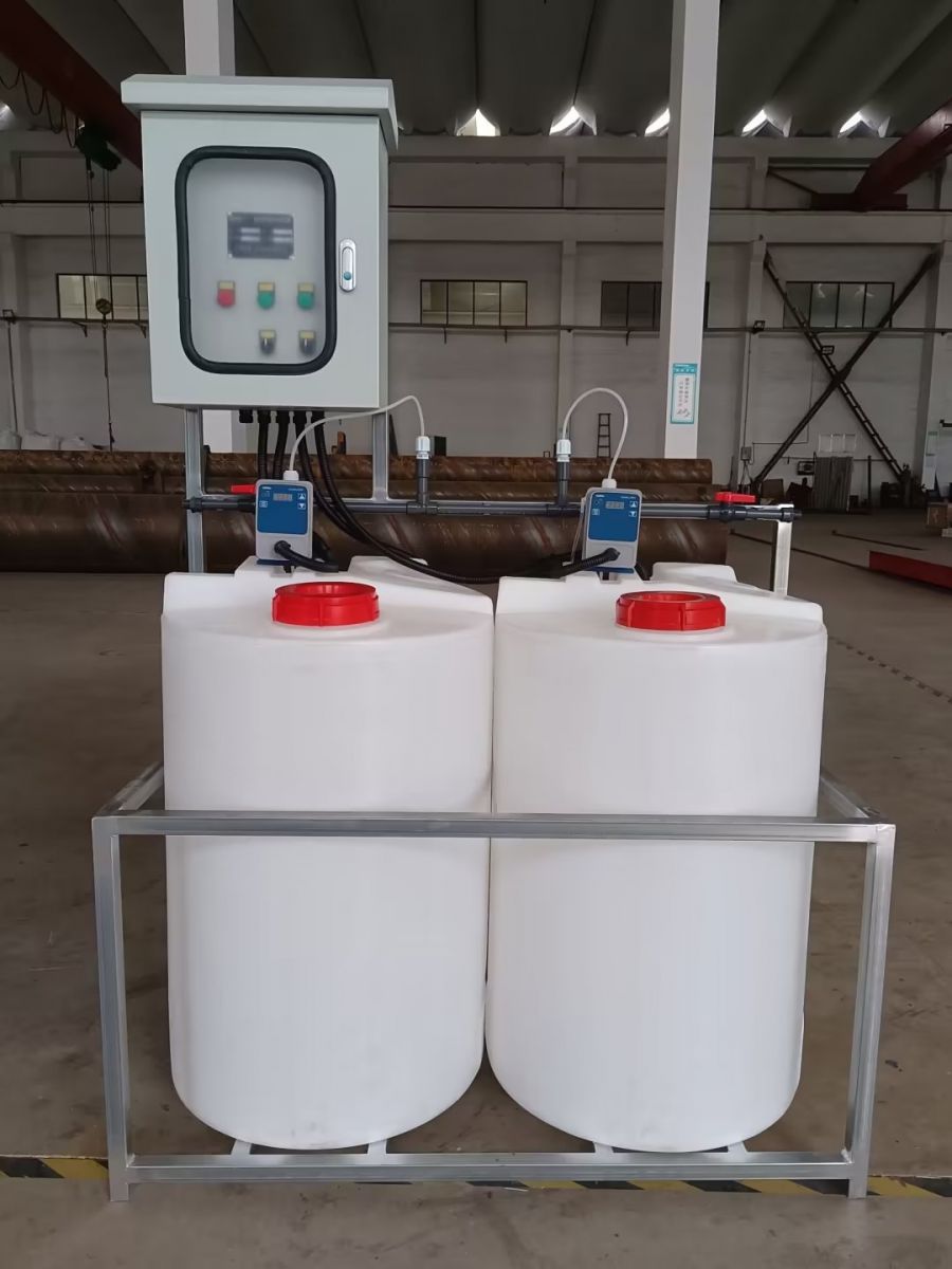 全自動加藥裝置采用時間程序控制,此控制方式無需儀表的支持,首先根據(jù)系統(tǒng)的運轉(zhuǎn)需要設(shè)定自動加藥的周期、加藥量、加藥時間和加藥頻率。在以后的系統(tǒng)運轉(zhuǎn)過程中,到加藥周期,計量泵自動打開加藥,加到規(guī)定的時間計量泵關(guān)閉;到排污周期,計量泵停止加藥,排到規(guī)定的時間后,計量泵繼續(xù)開啟,補充排污損失掉的藥劑,把系統(tǒng)的含藥量維持在正常的水平、加到規(guī)定的時間計量泵關(guān)閉。