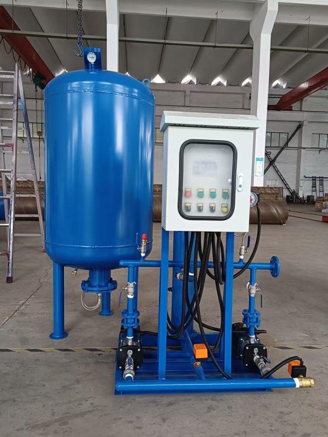 定壓補水機組由囊式壓力罐、水泵、控制箱、底架、壓力感應(yīng)裝置、管道閥門等組合而成,是一種兼有升壓、調(diào)節(jié)、儲水、供水等多種功能的常用供水設(shè)備。定壓補水機組利用氣壓罐的可調(diào)節(jié)能力,可自動調(diào)節(jié)用戶水量的變化,當(dāng)用水量減少或不用水時,可較長時間不啟動水泵,達(dá)到節(jié)能目的。與水塔、高位水箱相比可節(jié)省投資約40%-60%。該設(shè)備結(jié)構(gòu)緊湊,與其他傳統(tǒng)的供水裝置相比減少了占地面積,節(jié)省了土地資源。本設(shè)備全自動運行,無需專人管理,工作可靠。